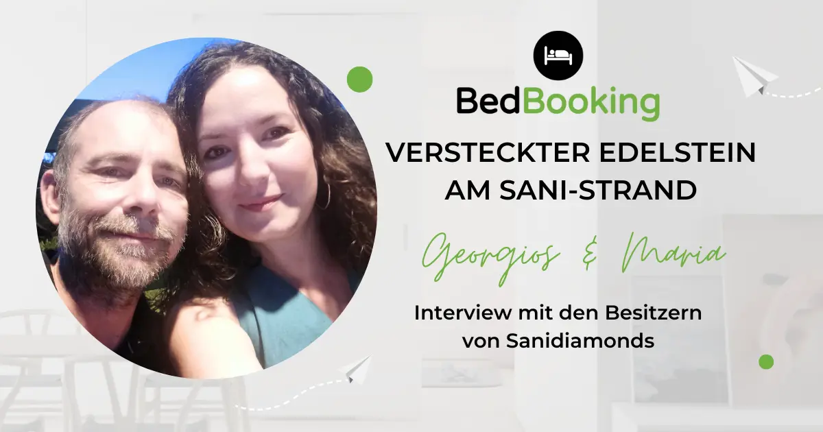 Lerne die Geschichte von Sanidiamonds kennen, einem Familienschatz am Strand von Sani in Chalkidiki, Griechenland. Erfahre, wie BedBooking Georgios und Maria dabei unterstützt, in diesem gemütlichen, von der Natur inspirierten Ort einen reibungslosen Aufenthalt zu gewährleisten, der Familien, Freunde und Tiere willkommen heißt. Tauche ein in den Charme der griechischen Gastfreundschaft!
