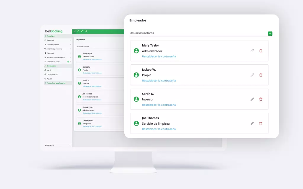 El Módulo de Empleados, como novedad, está disponible en el paquete PREMIUM de BedBooking. Sin embargo, la posibilidad de editarlo, cambiarlo y personalizarlo es igualmente posible en su ordenador, tablet, portátil, así como en la aplicación en su smartphone. Cualquier número de usuarios de BedBooking, tienen acceso al Módulo de Empleados y acceso seguro a los datos sensibles.