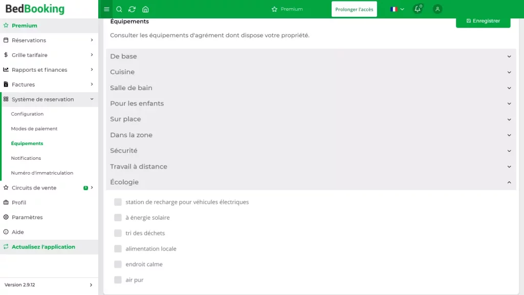 De plus en plus de voyageurs sont guidés par des valeurs écologiques lorsqu’ils choisissent un hébergement. C’est pourquoi le système BedBooking propose des commodités liées à l’écologie, telles que des bornes de recharge pour les véhicules électriques, une alimentation par des panneaux photovoltaïques, le tri des déchets, une alimentation locale, un quartier calme ou un air pur. Cela vous permet d’attirer des touristes qui apprécient la protection de l’environnement et qui recherchent des hébergements écologiques.