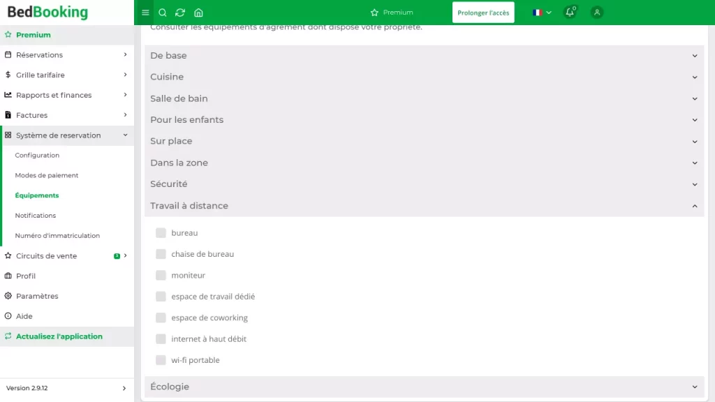 Le système de réservation en ligne BedBooking a introduit deux nouveaux types de commodités qui répondent parfaitement aux tendances et aux attentes actuelles des clients. Le travail à distance et l’écologie sont des domaines clés sur lesquels de nombreux voyageurs se concentrent. C’est pourquoi BedBooking, en tant que système de réservation innovant et gestionnaire de canaux polyvalent, répond à ces besoins en offrant des fonctionnalités supplémentaires que vous pouvez pleinement exploiter pour adapter votre offre aux exigences des voyageurs modernes.