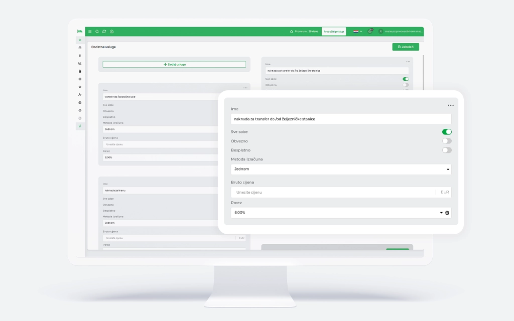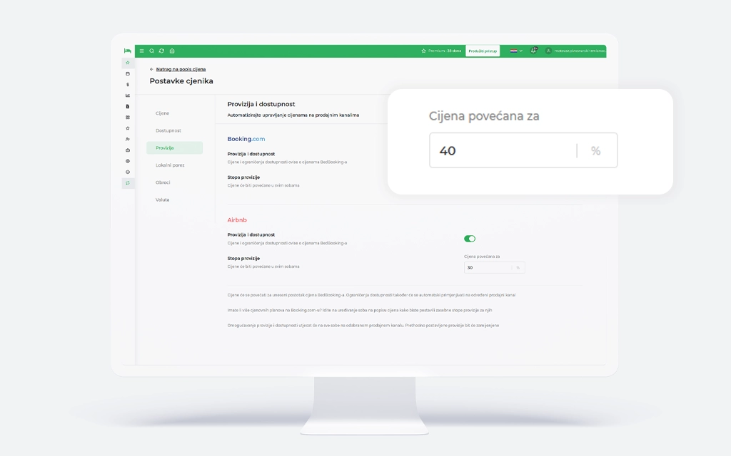 Lokalna „Provizija i dostupnost“ – Napredniji korisnici mogu postaviti proviziju u postotku i/ili iznosu za svaki cjenik na Booking.com i za svaki oglas na Airbnb. Ovo je idealno za one koji žele imati potpunu kontrolu nad svojom politikom cijena.