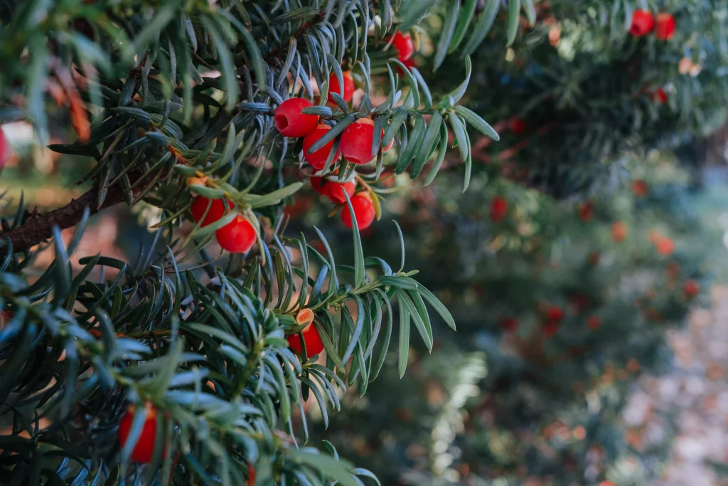Druga propozycja na gęsty żywopłot, ale tym razem zimozielony, to cis pośredni ‘Hicksii’ (Taxus x media). Cisy to krzewy bardzo często wykorzystywane w żywopłotach ze względu na swoje niskie wymagania i łatwość uprawy. Rosną niemal wszędzie – nawet w cieniu, niezwykle dobrze znoszą cięcie i nie obawiają się niskich temperatur. Regularnie przycinany tworzy bardzo równe i proste żywopłoty, a ich głęboka zieleń jest doskonałym, całorocznym tłem dla roślin kwitnących. Do wymienionych zalet można zaliczyć fakt, że jest to iglak który nie traci swojej ciemnozielonej barwy przez cały rok.