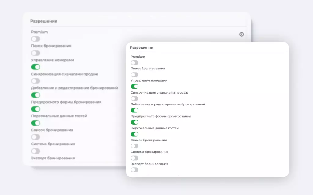 Вы можете настроить все разрешения самостоятельно или использовать предопределенные роли, установленные BedBooking. Вы сами решаете, какие данные предоставлять своим сотрудникам или внешним компаниям.